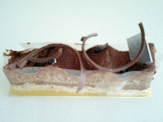 あとこのケーキ、お酒以外にも色んな匂いがついててチョコが完全に台無しでした。 元々チョコ自体が、フランス菓子にしては──下品な風味ではあるのですが、ここまでそれぞれが主張し合うと何が何だか分かりません。 私が食べてないケーキの方でも「風邪薬みたいな味がする」と評されてましたけど、こちらも似たような感じ。少なくとも、子供受けする味ではないと思います。 |
