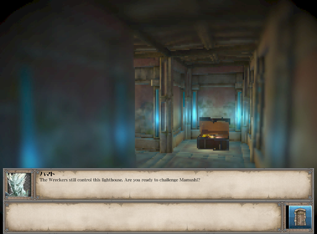 単に日本語が用意されていないだけですが、灯台でハマトさんに会った後一旦外に出て再度入ろうとすると再現します。