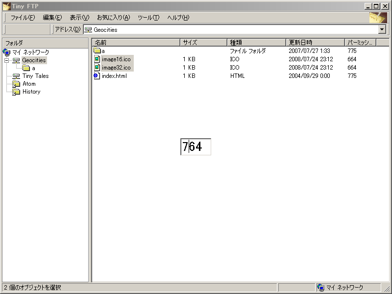 ファイル一覧上で0~7のキーを押すと真ん中にこんな感じのテキストが現れて、続けてキーを押していって最後にEnterすると、パーミッションが入力した値に変更されます。